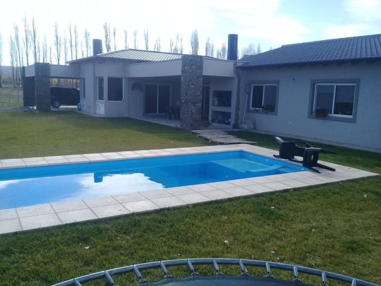Musacchio Propiedades ofrece en venta hermosa casa ubicada en Tupungato, barrio privado "ENTREVIDES", sobre Ruta Provincial 86 y La Carrera (a minutos de bodega Atamisque). Distribuida en una planta, cuenta living-comedor con estufa a leña, cocina-comedor con salamandra Tromen a leña (ambientes amplios y luminosos), cuatro dormitorios (principal con baño en suite), tres baños completos, despensa, lavandería, jardín con piscina (20.000 litros) y calefacción solar marca Energe, galería techada con churrasquera, cochera doble techada. Cuenta con todos los servicios de agua, gas, luz, termotanque solar de 260.000 litros marca Energe, calefacción por losa radiante. El 75% del inmueble posee pisos de madera tabloneado de virapita