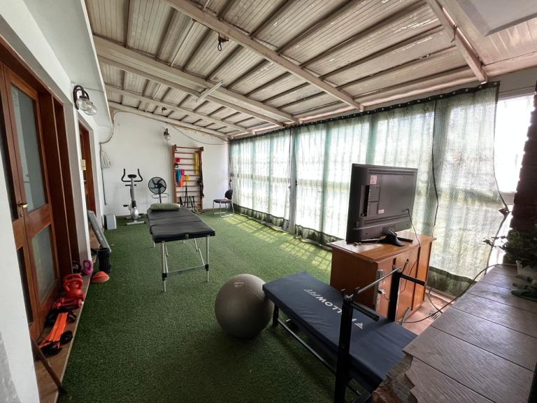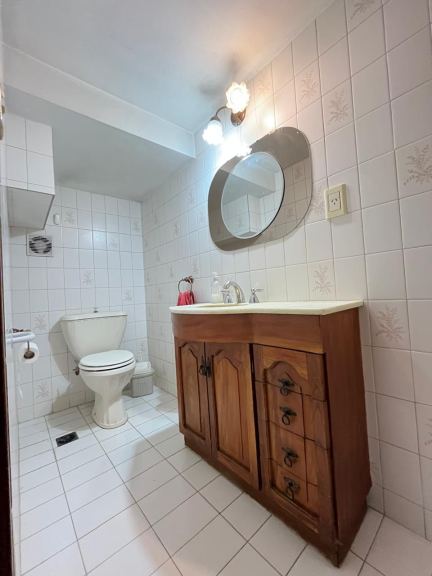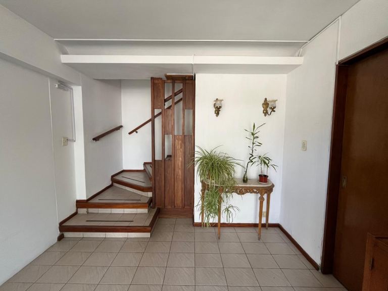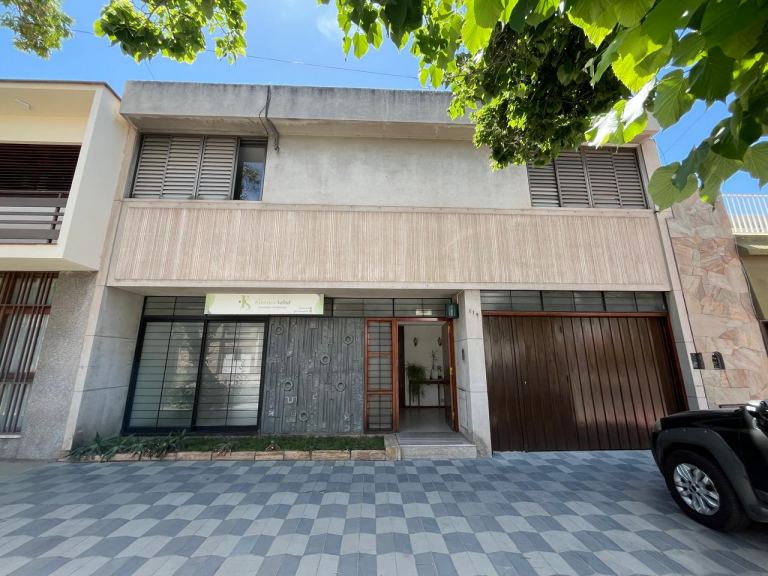 Al ingresar a la propiedad, nos recibe un hall de acceso que nos conduce a un espacioso living-comedor, que actualmente ha sido adaptado para consultorios y cuenta con aire acondicionado. En la planta baja también encontramos un toilette, una cocina con dependencia de lavandería y baño completo, una galería cerrada, jardín con espacio para tender y una cochera techada con portón automatizado para un vehículo.